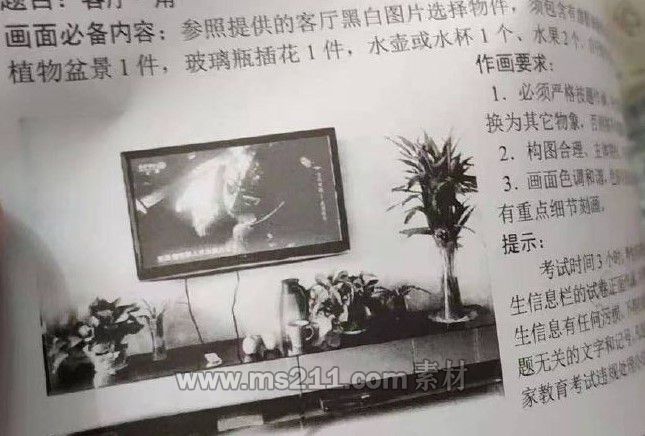2021年四川美术联考色彩科目考试12月5日14:00-17:00举行,考试满分为100分,考题为《客厅一角》,场景色彩静物画照片,具体如下图: