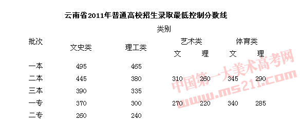 艺术类:二本文科330分理科300分;一专文科280分理科245分