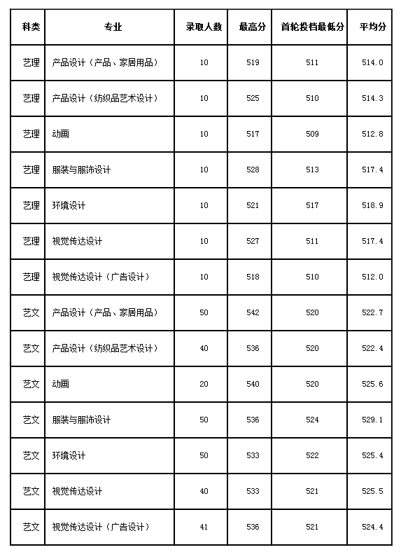浙江理工大学科技与艺术学院2015年美术类本科专业仅在浙江省招生,根据浙江省美术类统考政策规定,按照“分数优先、遵循考生志愿、专业志愿间无级差分”的原则依次择优录取。具体各专业录取综合分如下表: