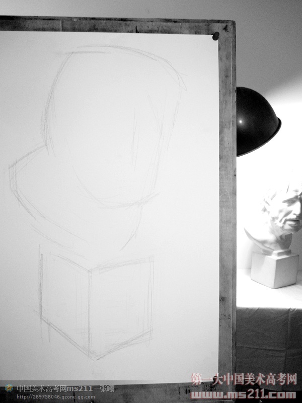 ↓↓↓ 用最简练的线条,迅速地勾画出是石膏像的大明暗。切记要忽略所有细节。