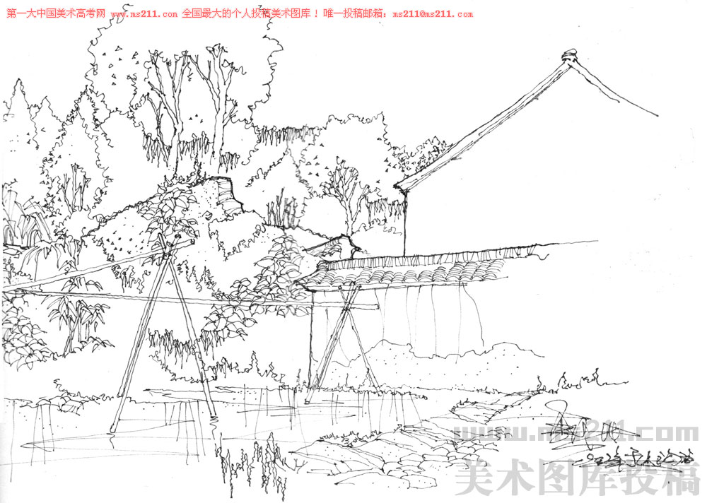 中国美术学院继续教育学院环境艺术设计教师,李彤洲,风景速写美术高考投稿作品2012121806