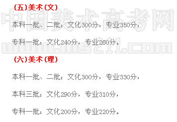 (十一)省外单独招生的非独立设置的艺术院校的艺术专业文化控制线