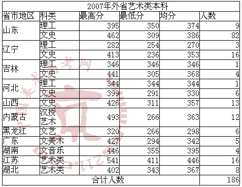 2007年北京城市学院美术高考录取分数线