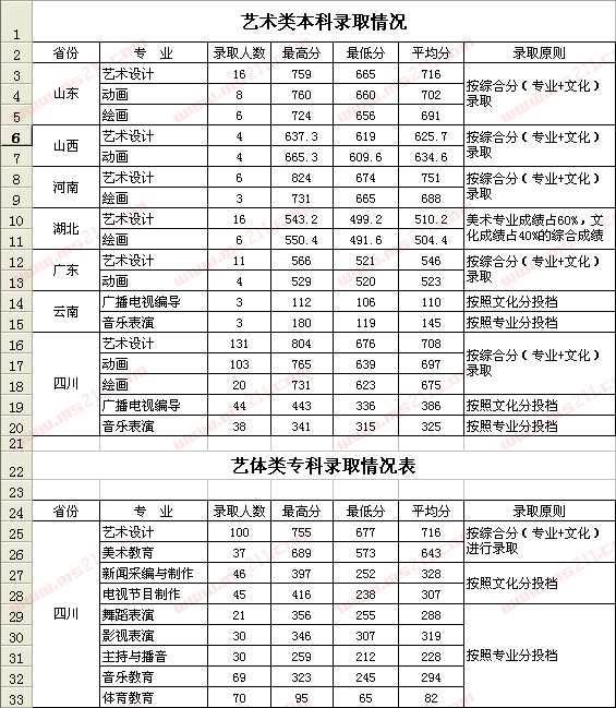 2007年成都学院美术高考录取分数线