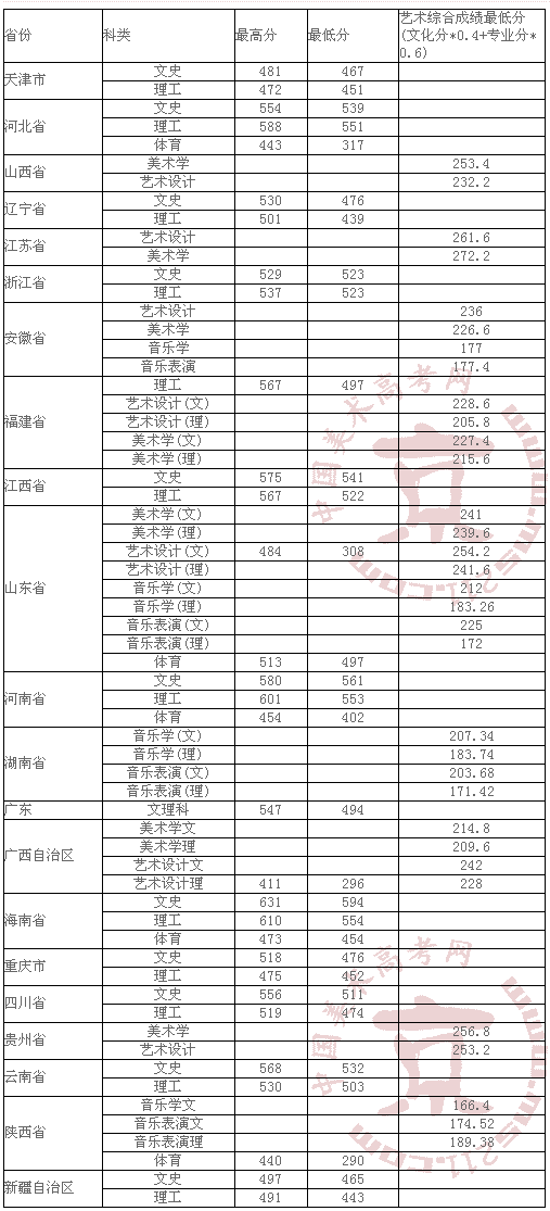 2007年襄樊学院美术高考录取分数线