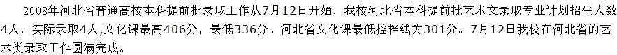 [图文]2008年内蒙古农业大学河北省艺术类本科提前批录取线