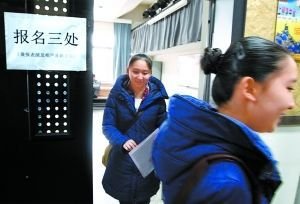 昨天,考生从喜剧和相声报名教室走出。本报记者戴冰摄