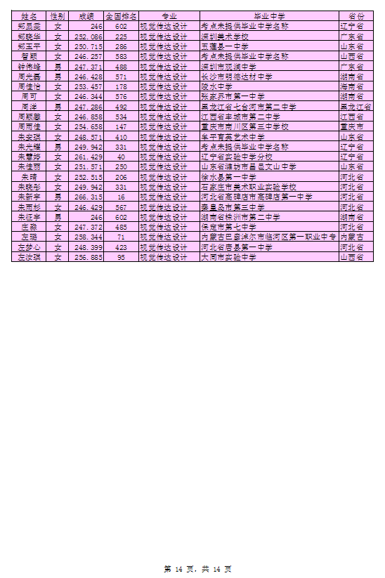 北京印刷学院2016年艺术类本科专业考试合格考生名单