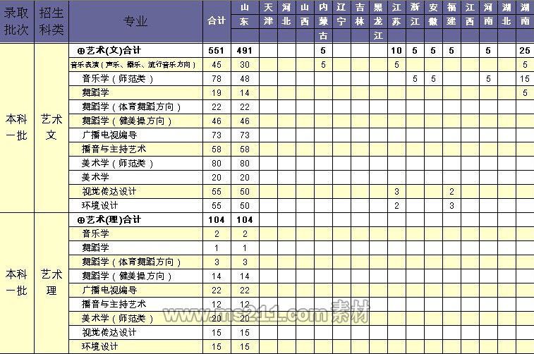 2016年南京师范大学艺术类分省分专业...