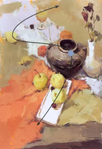 圆形构图就是让静物在画面中央形成一个圆圈。圆形构图在视觉上给人以旋转、运动和收缩的审美效果。圆形构图就不会有松散感,但是这种构图,活力不足,缺乏冲击感。