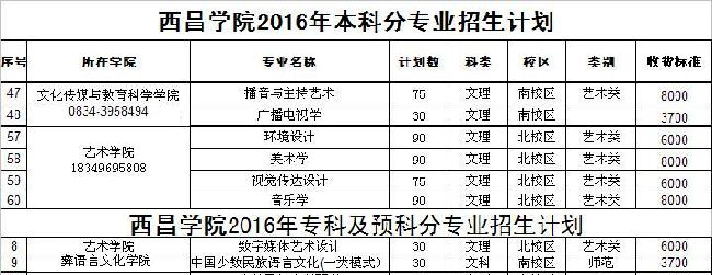 2016年绵阳师范学院艺术类分省分专业...