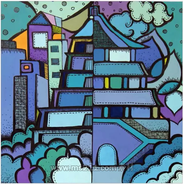 重线勾边是彩色装饰画里运用比较广泛的一种表现手法。这种技法最能突出装饰感,是一种安全可靠的方式,通过轮廓勾边,可以将主体物突出,使物体具有几何感并形成一种笨拙朴实的感觉,从而使画面层次分明 。