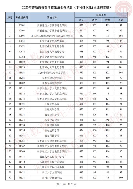 相关热词搜索:天津B阶段征询志愿各院校专业组平行志愿录取最低分