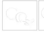两个橘子 为了绘制出更生动形象的画作,请注意区分橘子皮与果肉不规则平面二者不同的质感。 1 大致描绘出橘子的轮廓,确定橘子的