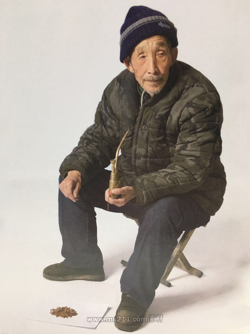 速写题目: 一个座在凳子上手拿烟袋的老大爷