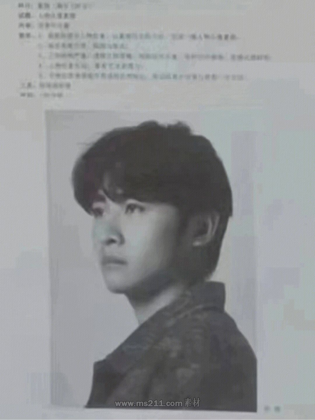素描考题:男青年头像,侧面,照片模拟写生