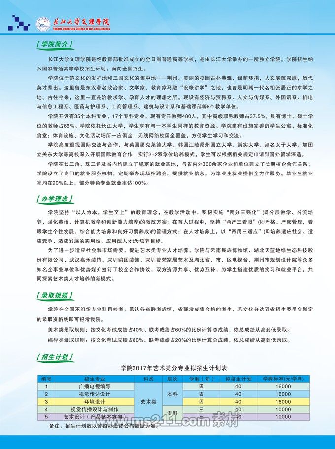 相关热词搜索:长江大学 文理学院 艺术类 2017年长江大学文理学院艺术类招生简章