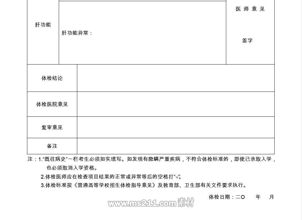 (五)体检表