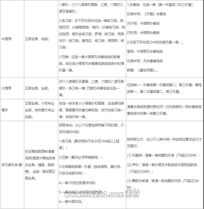二、专业测试视频分专业附加要求、专业测试曲目要求