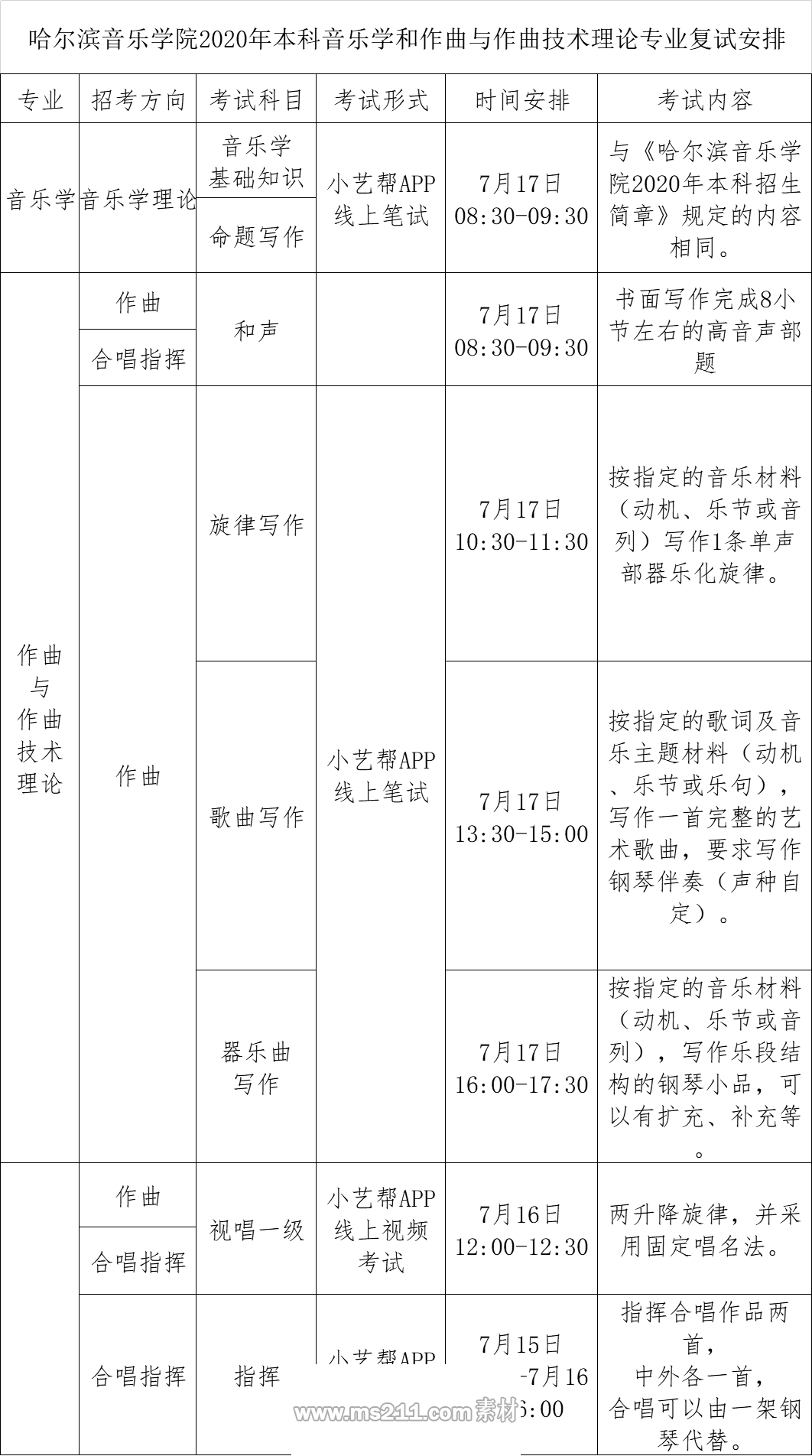 根据教育部《关于做好2020年普通高校特殊类型招生工作的通知》(教学司〔2019〕10号)文件和教育部关于2020年高校艺术类专业考试招生工作视频会议精神和指导意见,结合《哈尔滨音乐学院关于2020年本科专业校考复试安排的通知》要求,现就音乐学、作曲与作曲技术理论2个本科专业校考复试有关事项通知如下: