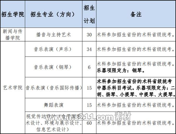 我校2021年艺术类专业计划招生160人,所有招生专业的术科成绩均承认各招生省份的省级统考成绩,不再组织术科校考。具体招生计划如下: