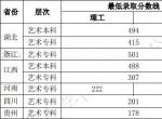 湖南省录取线 美术理 本科三批控制线:文化263分、专业210 平行志愿投档线:250 7分 征集志愿投档分数线:252 1分 美术