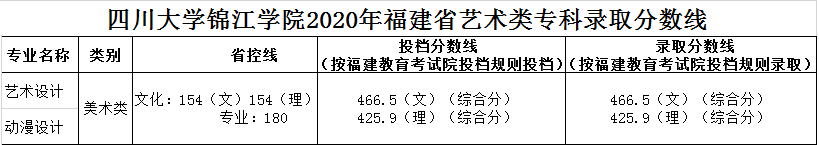 美术与设计类专业,四川省按专业成绩由高分到低分择优录取,专业分数相同时优先录取文化成绩较高的考生。其他省份按文化成绩与专业成绩之和由高分到低分择优录取,总分相同时优先录取专业成绩较高的考生。