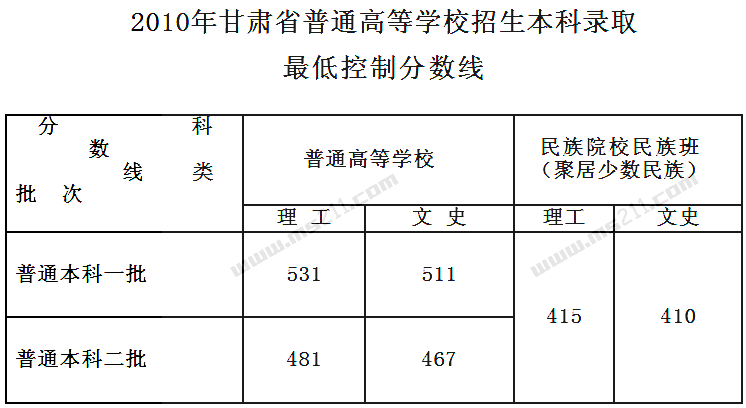 2006-2013年甘肃高考文理科各批次录取控制分数线,为广大考生填报志愿提供参考。