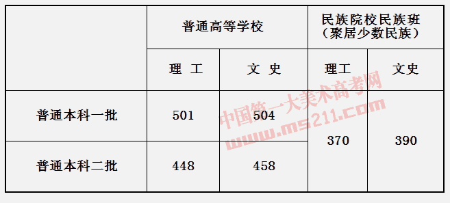 | 第一批重点院校 | 517 | 533 | 390 | 410 |
