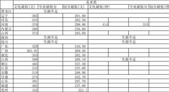 对取得了各省(自治区)艺术类专业统考合格证和我校艺术类专业校考合格证且文化课成绩达到各省最低录取控制分数线的省外考生,我校按以下原则录取:广播电视编导和戏剧影视文学专业按照考生所在省份高考文化成绩从高分到低分录取,如文化成绩相同,专业成绩高者优先;美术类、音乐类、舞蹈学、播音与主持艺术专业按综合成绩从高到低择优录取(综合成绩=校考专业分*60%+高考文化分*40%),综合成绩相同时,专业成绩高者优先。