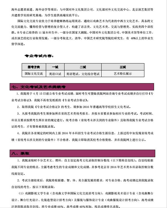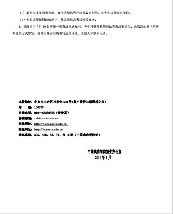 2016年中国戏曲学院本科招生简章
