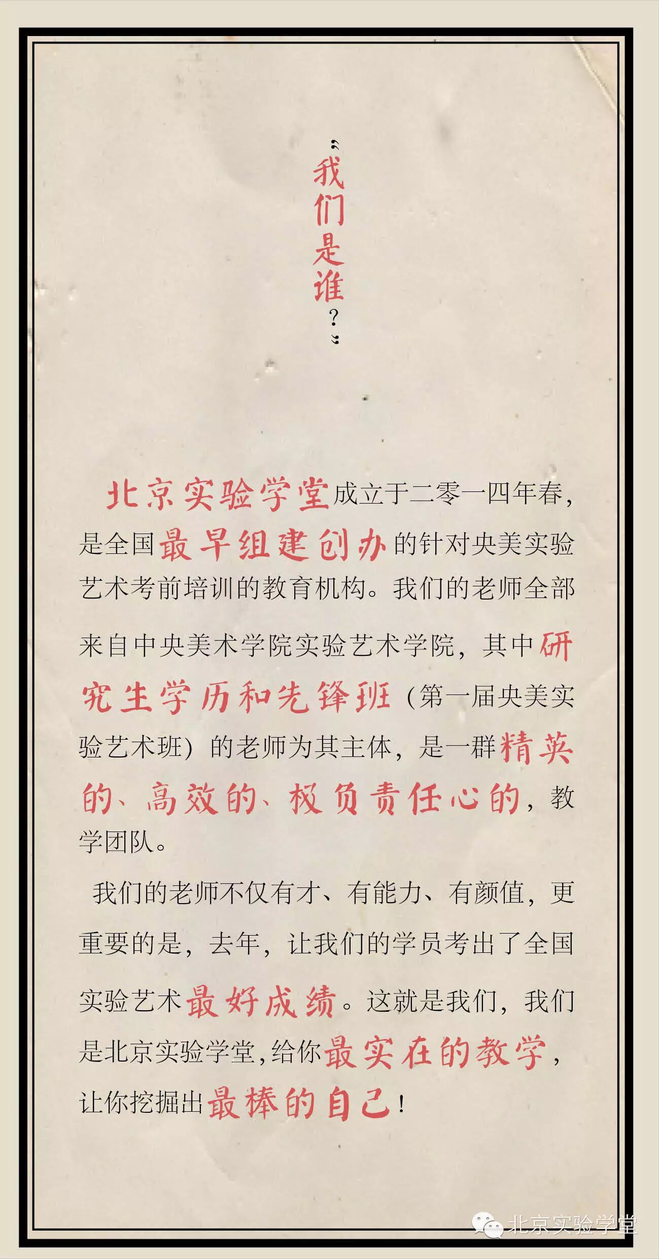 当今国际艺术气候风起云涌,吾国实验艺术事业方兴未艾。吾等问学志笃,十余年来,毕力斯业,乃于去岁央美实验艺术学院单独招生之际,成立实验学堂,欲群集同好,砥砺精进。吾等皆毕业于央美实验艺术学院,恩师教诲淳淳,艺术丰赐独厚,而鸿业未竣,纵材拙智驽,焉敢袖手。今既开坛论道,虚纳群贤,必尽问学之宏旨,宗师承之正途,庶竭驽钝,无负所学,而吾国实验艺术其将大兴于诸君之手乎!