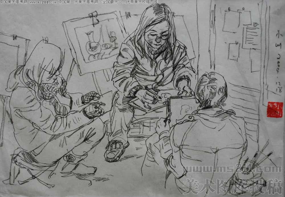 西安美术学院装饰艺术系2004级公共艺术工作室,李明,人物速写美术高考投稿作品2011012102