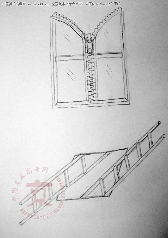 2004年北京服装学院美术高考优秀试卷(第4套创意速写:门、梯、窗的联想,任选两个)2007110614