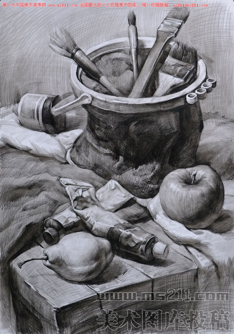 广州美术学院2008届雕塑系,林飞龙,素描静物美术高考投稿作品2013121005