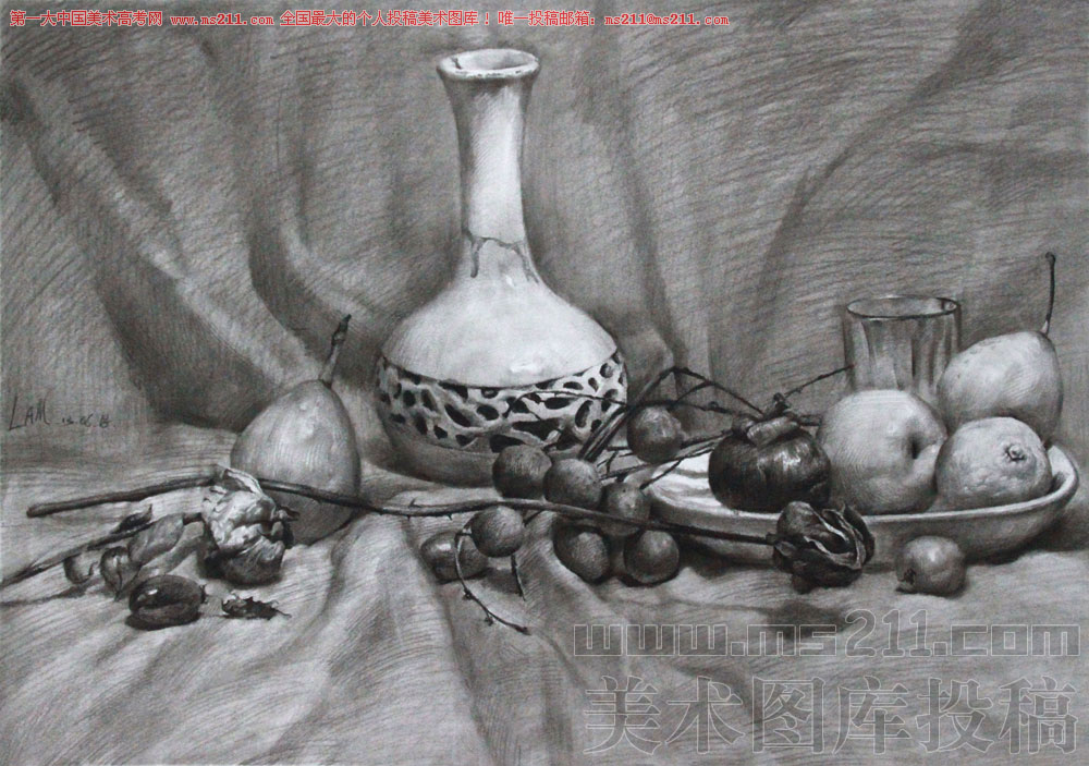 广州美术学院2008届雕塑系,林飞龙,素描静物美术高考投稿作品2013122403