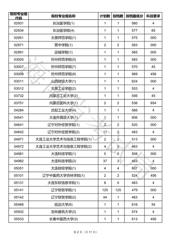海南录取本科普通批院校专业组征集志愿平行投档分数